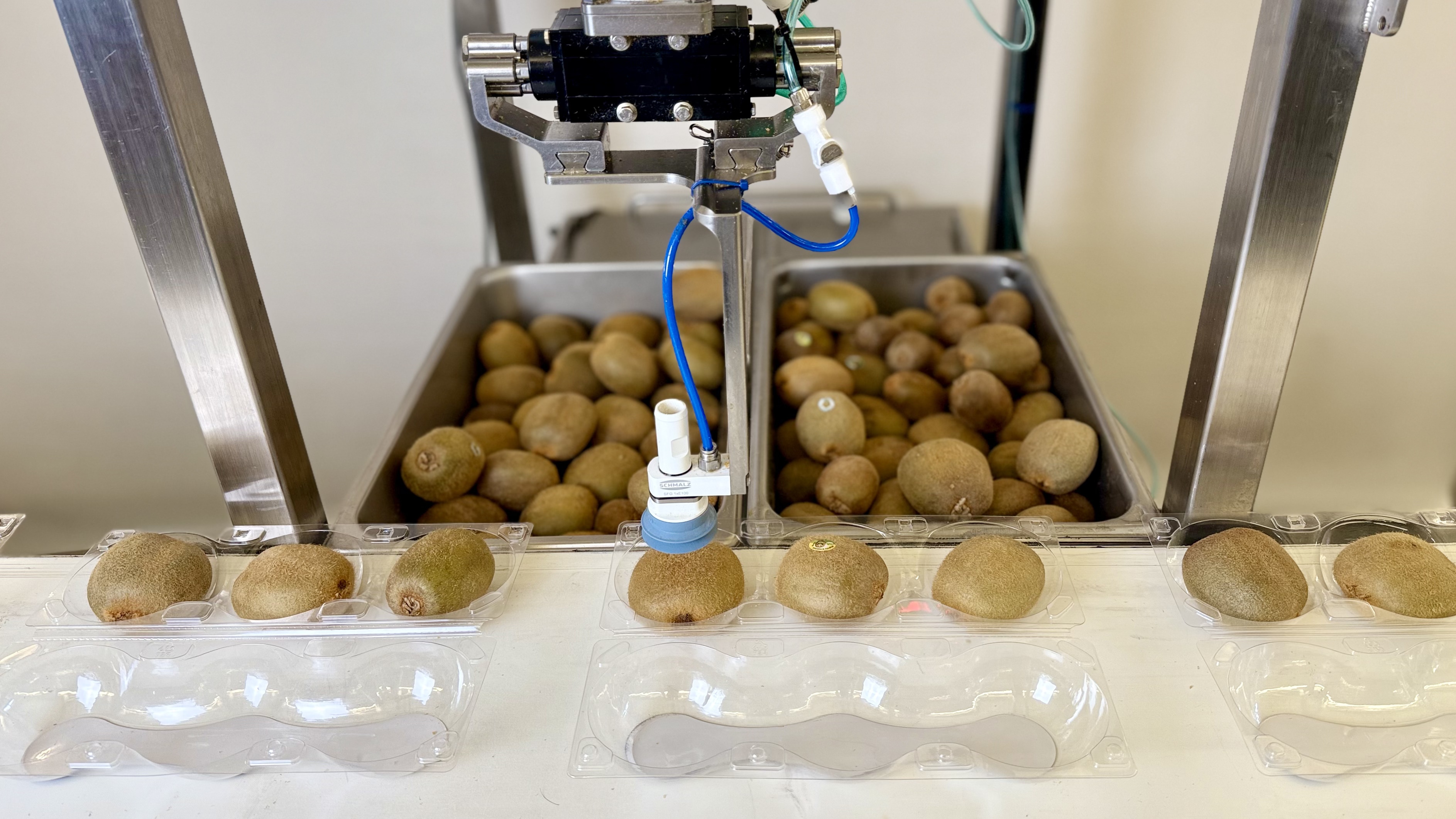 Chef’s robots use AI and computer vision to handle hundreds of SKUs with varying ingredients, portion sizes, tray layouts, and placement requirements. Unlike traditional depositors that require hours of changeover time, Chef’s AI-enabled robots can switch between ingredients in under a minute. The robots track and automatically adjust to tray positions in real time, eliminating spillage while maintaining consistency across high-volume production.